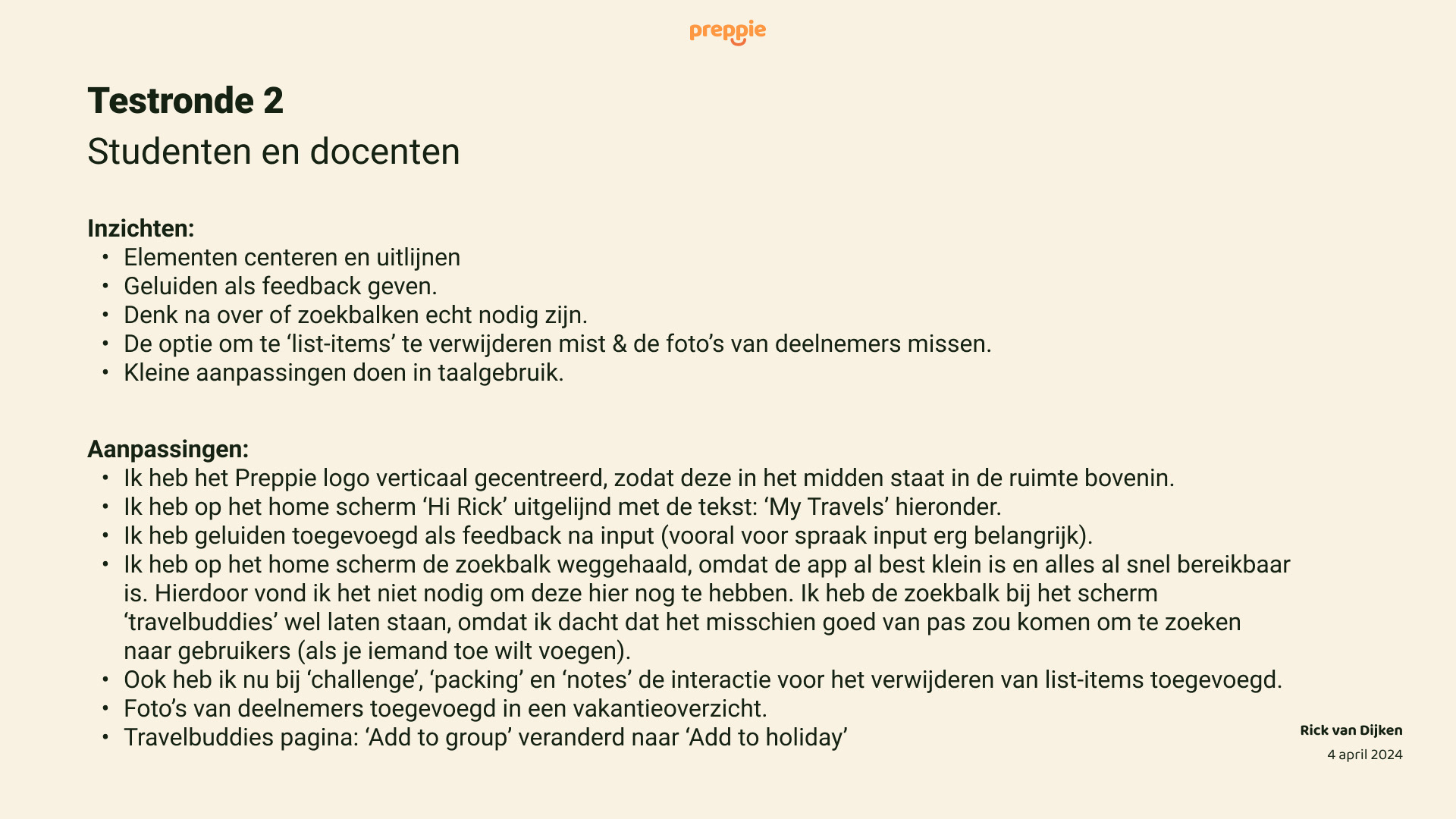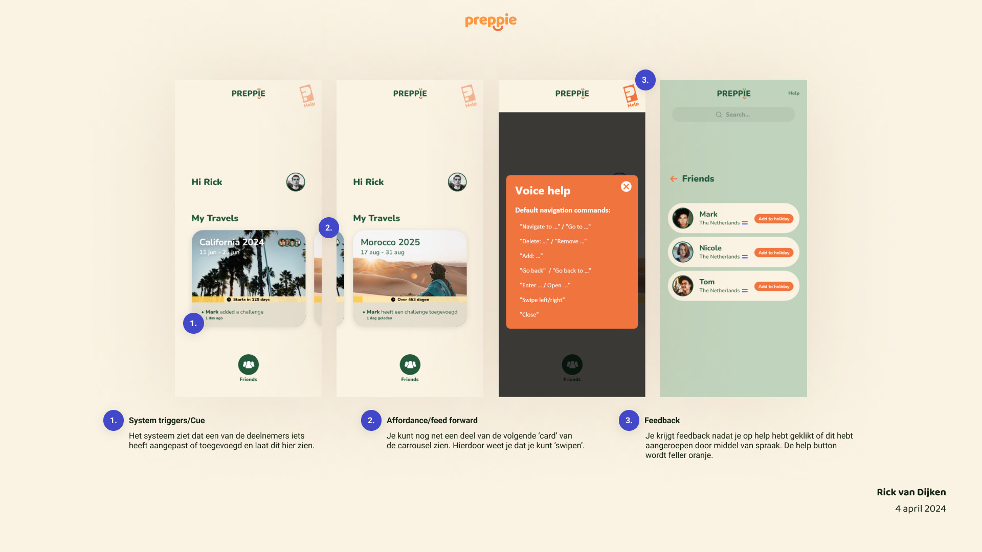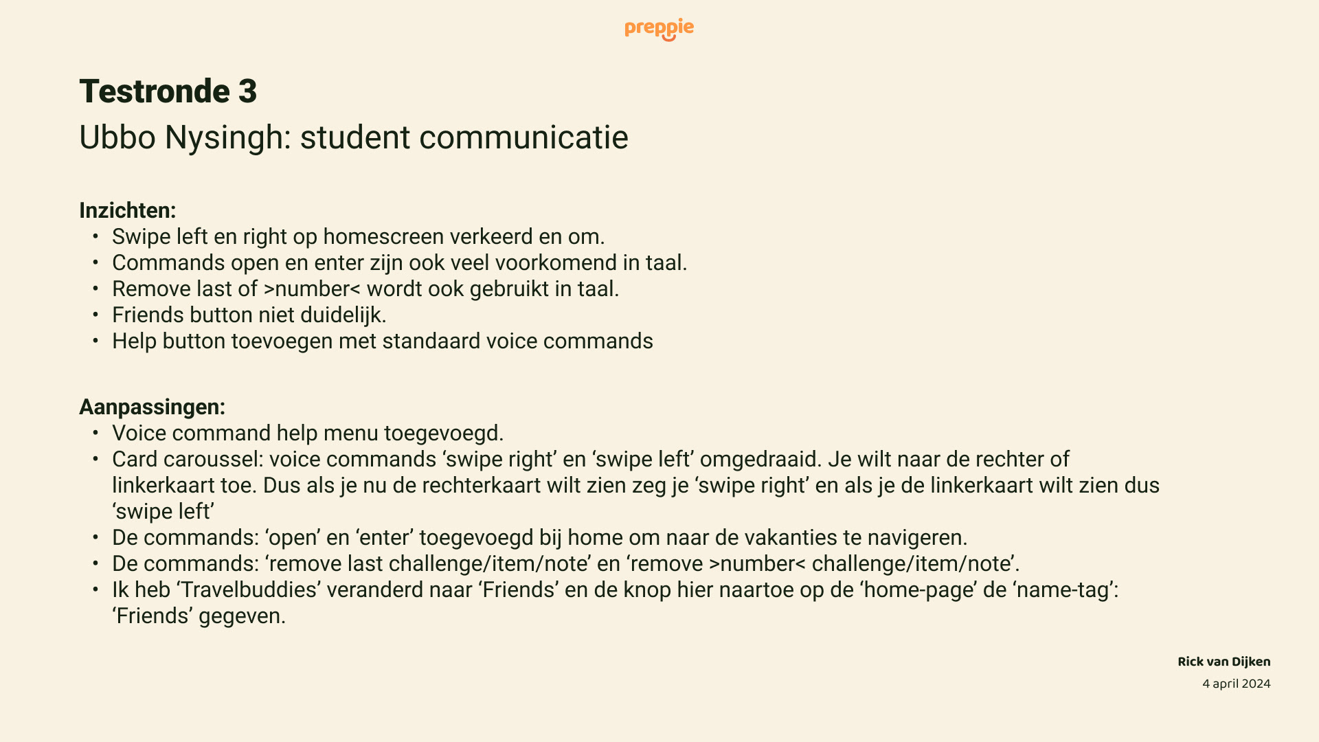 4. I would do more research into the language use of the target group to add as many voice commands as possible that could be used. Which I would then include in and test with the prototype.